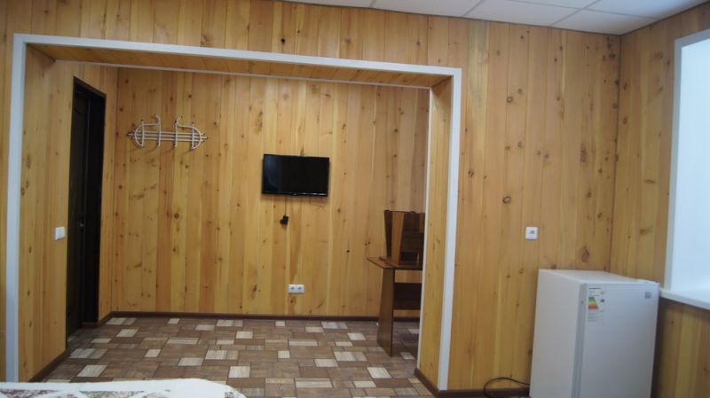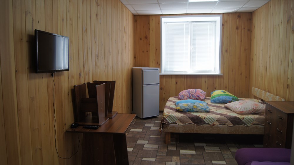 На территории комплекса расположены двухэтажный гостевой корпус и небольшие деревянные домики на берегу. Гостиничные номера здесь нескольких категорий комфорта — есть бюджетные варианты с общим санузлом на этаже, а есть стандартные номера с собственной ванной комнатой. Везде есть плазменный телевизор и мини-холодильник.