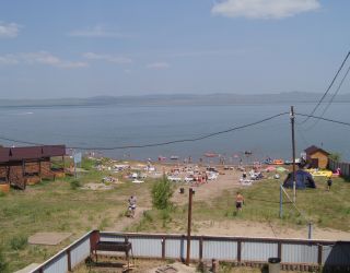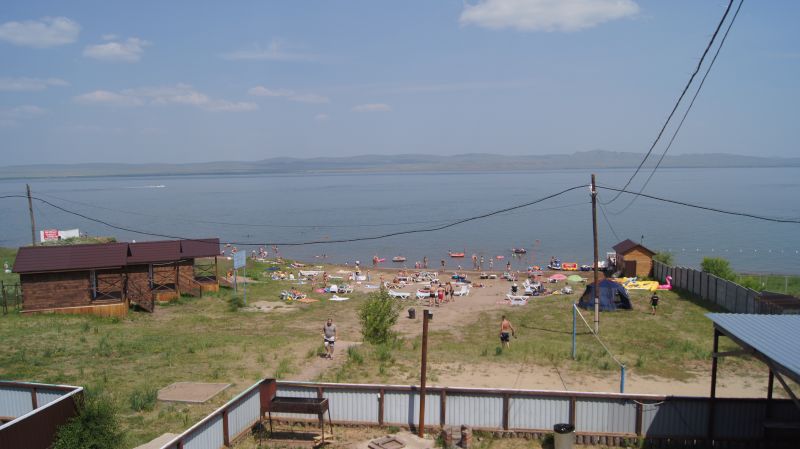 Поездом до ж/д вокзала г. Абакана, далее на междугороднем автобусе до п. Жемчужный, далее 1 км до базы отдыха.